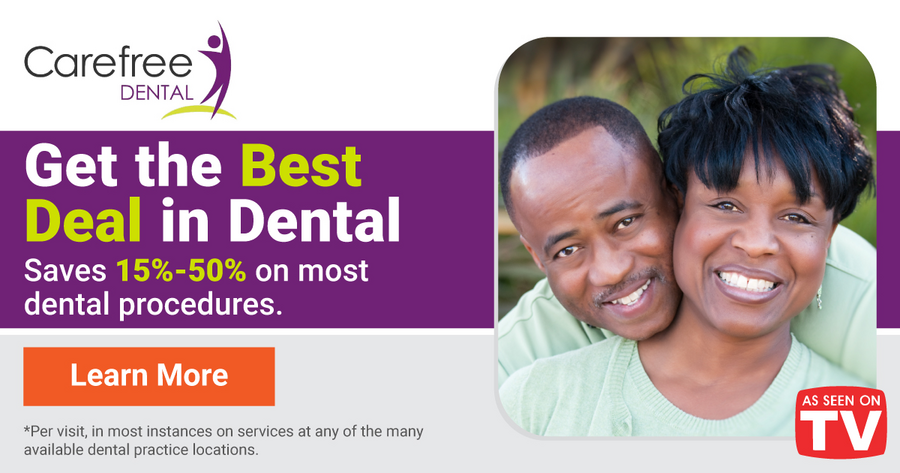 A dental discount card like Carefree Dental is an easier, simpler way to save money on dental expenses. Unlike dental insurance, Carefree Dental has a low monthly fee, no annual savings cap, and no contracts or commitments.
